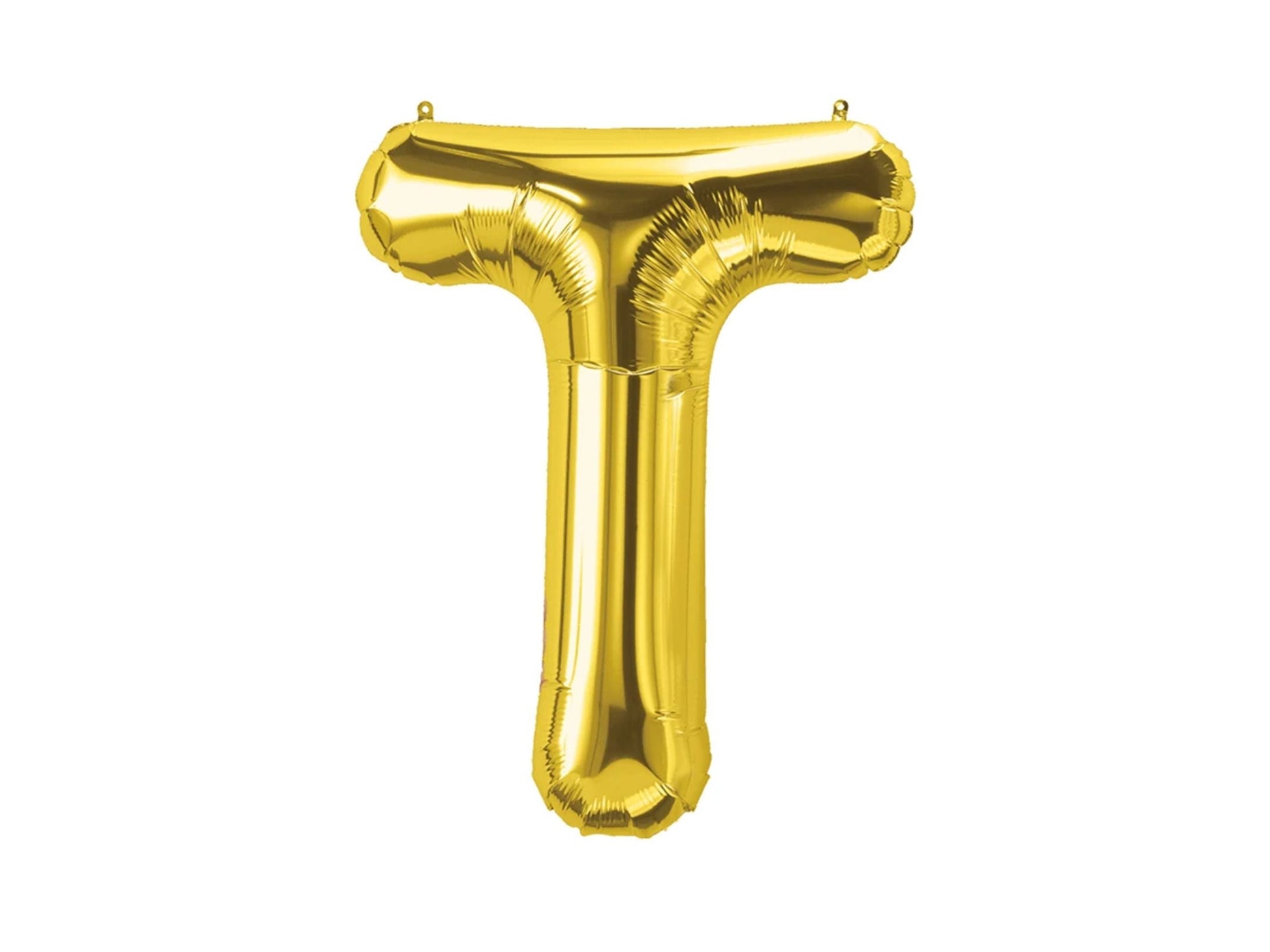 بالون عيد ميلاد حرف T ذهبي مملوء بالهواء العادي