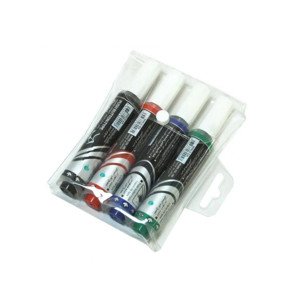 قلم تحديد للسبورة البيضاء بزر ضغط، حبر سائل، 4 قطع