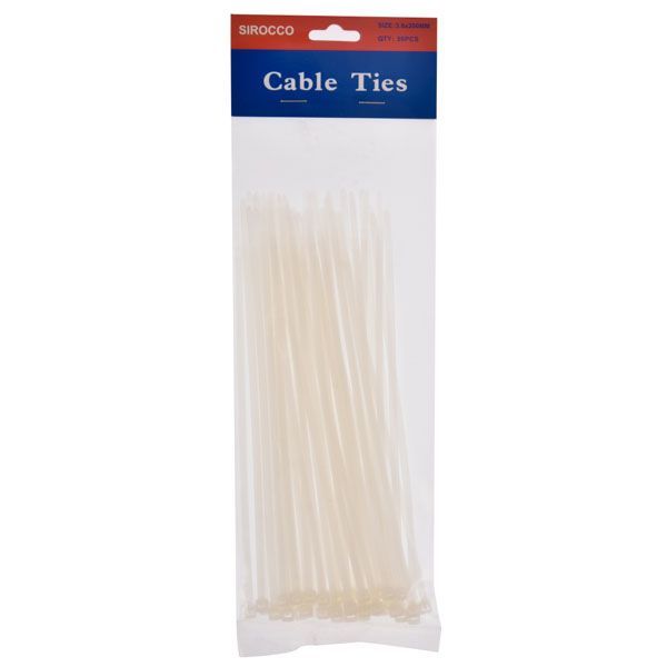 ربطات كابلات سيروكو البيضاء (3.6 × 200 مم) 50 لكل عبوة