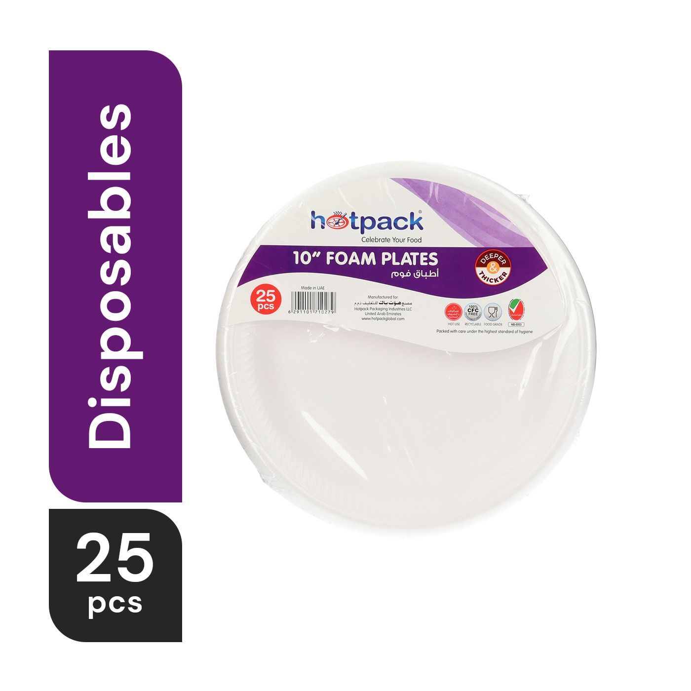 Hotpack Round Foam Plate, 10 Inch, 25 Pieces