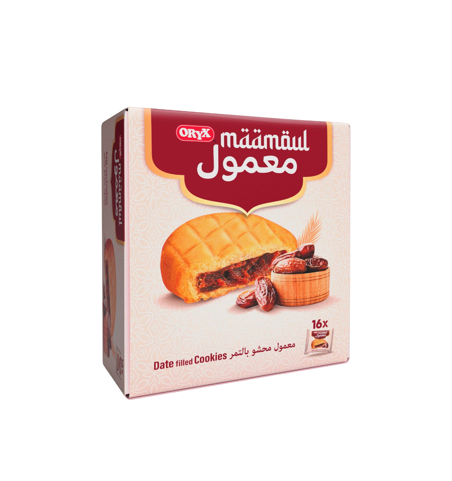 Oryx Maamoul Date Filled Cookies deliver authentic Middle Eastern flavor in convenient individual portions. Each box contains 16 pieces of 20g cookies, featuring a delicate semolina shell with a rich date filling. These traditional maamoul cookies offer the perfect balance of buttery texture and natural sweetness, ideal for serving with Arabic coffee or tea. A premium choice for those seeking genuine taste and quality in every bite.